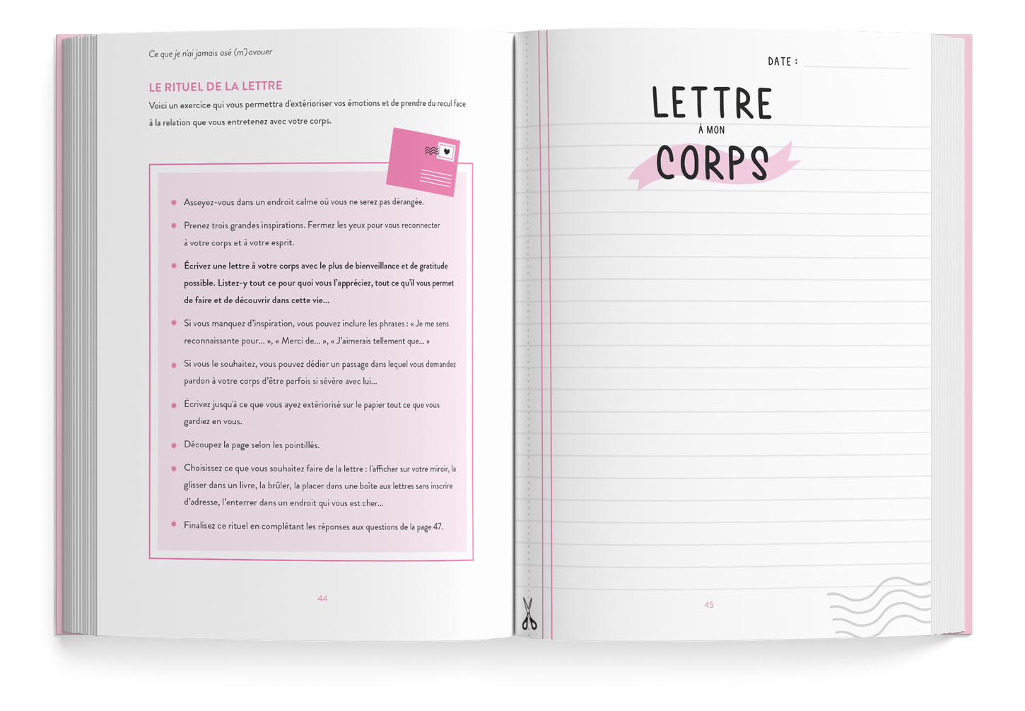 « Ce que je n’ai jamais osé (m’)avouer » est un guide dans lequel je partage mon amour de l’écriture sans autocensure, en m’inspirant de journaux que je tiens depuis plus de quinze ans. Il explore mes réflexions sur la magie subtile qui se produit lorsque nous mettons par écrit nos rêves et les expériences que nous souhaitons inviter dans notre vie.